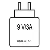 USB-C PD: 9V/3A, 12V/3A, 15V/3A