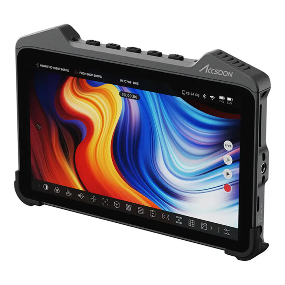 Der Accsoon CineView M7 ist ein professioneller 7-Zoll-Produktionsmonitor mit integriertem Wireless-Videoempfänger, der gestochen scharfe Full-HD-Bilder mit hoher Farbgenauigkeit liefert. Dank HDMI- und SDI-Ein- und Ausgängen sowie Cross-Konvertierung ist er flexibel einsetzbar. Der Monitor unterstützt 1D- und 3D-LUTs, bietet ein intelligentes Betriebssystem mit 8K-Prozessor und ermöglicht sogar Bluetooth-Audio. Mit seinem robusten Aluminiumgehäuse, aktiver Kühlung und vielseitigen Stromversorgungsoptionen – darunter NP-F Akkus und USB-C PD – ist der CineView M7 ideal für anspruchsvolle Filmproduktionen unterwegs und im Studio.