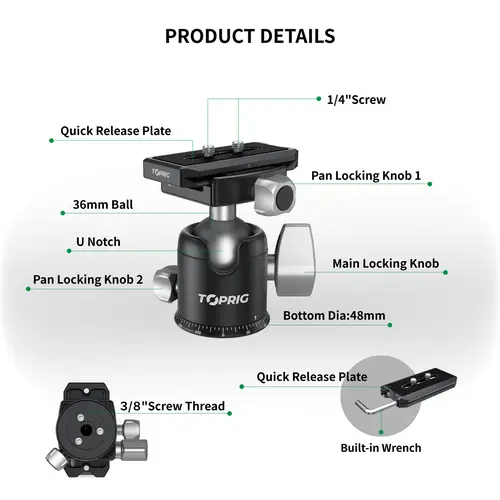 Hauptmerkmale• Leistungsstarker Kugelkopf• 360° Panorama-Aufnahme• Breite Kompatibilität• Schnellwechselplatte