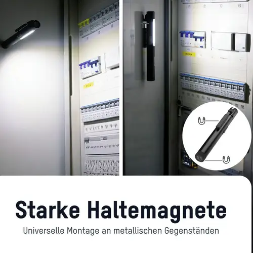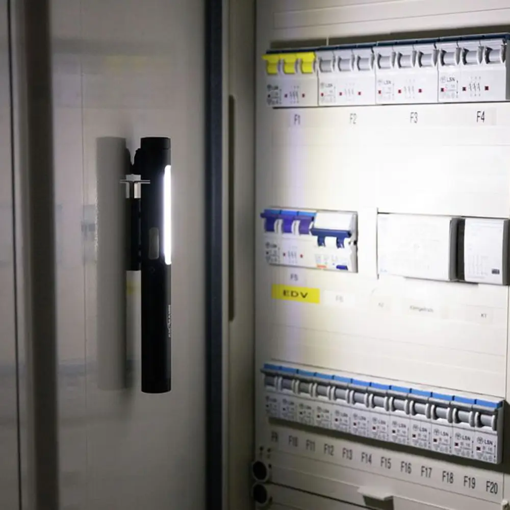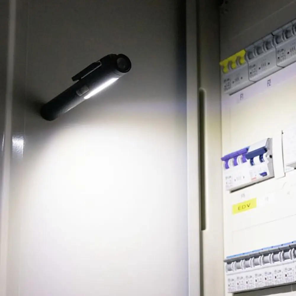 Mit vielen praktischen Kniffen ist die Penlight 4in1R ein absolutes Multitalent, ideal für vielseitige Anwender. Die Haltemagnete im Standfuß und im Clip dienen zur Fixierung und Ausrichtung der Leuchte an metallischen Gegenständen. Mit dem praktischen integrierten Gürtelclip kann die Lampe mühelos an der Hose oder Arbeitsjacke befestigt werden, so dass sie immer griffbereit ist. Dadurch bleiben beide Hände frei für die Arbeit in der Werkstatt, auf der Baustelle oder bei Montagearbeiten.