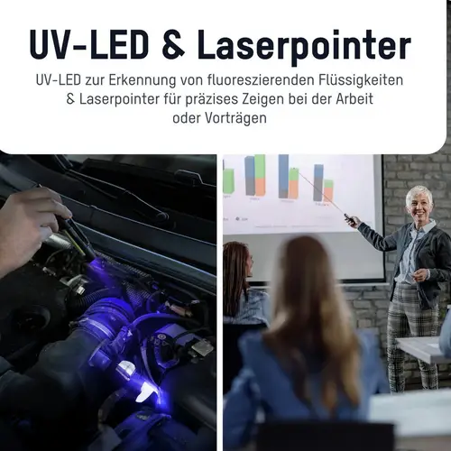 • Inkl. UV-LED und Laserpointer