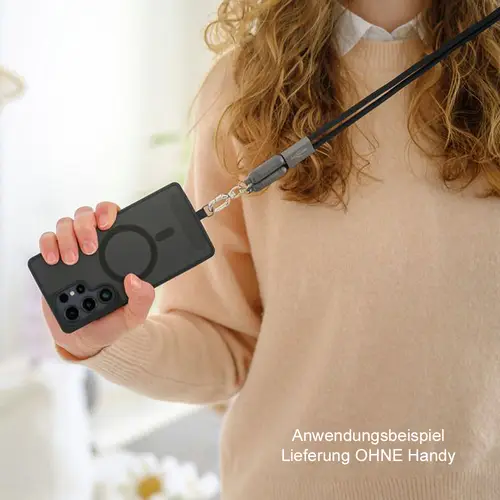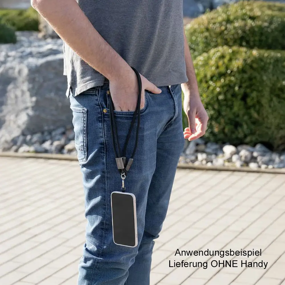 • Einfache Anwendung: Befestigungsplatte in die Handyhülle legen, Smartphone darauf platzieren, Lanyard Kabel daran befestigen