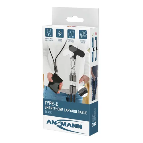 Ansmann USB-Lanyard schw. Typ-C zu Typ-C Trageband mit integriertem Kabel 120 cm