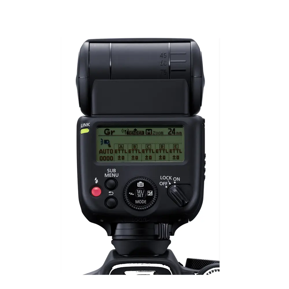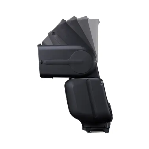 • Transmitter/Receiver-Funktion für kabelloses Blitzen per Funk in 5 Gruppen über 15 Kanäle
