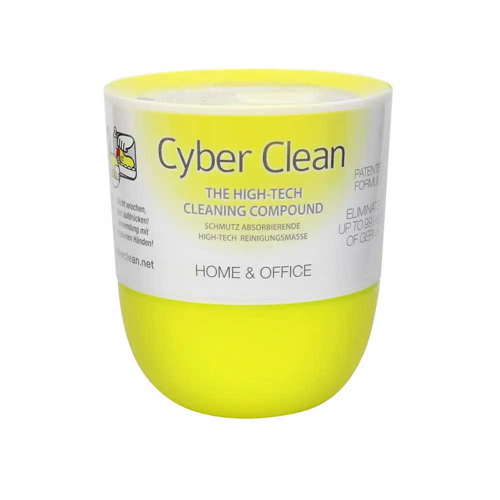 Cyber Clean® - Für lückenlose Sauberkeit und Hygiene.Keine Ansteckung per TastendruckEssen Sie am Computer oder trinken den Kaffee während Sie E-Mails schreiben? Dann wird es Sie wahrscheinlich interessieren, dass die Tasten des Computers möglicherweise stärker keimbelastet sind als eine öffentliche Toilette! Gar nicht zu reden von Geräten die von mehreren Personen genutzt werden oder Mobiltelefonen, wo ein schneller Abstrich von Tasten und Bildschirm sehr wahrscheinlich auch eine Belastung mit Fäkalkeimen ergeben würde.Staub, Partikel von Lebensmitteln und Flüssigkeitströpfchen gelangen in den Spalten und Ritzen und bilden einen idealen Nährboden für Bakterien und Viren. Von dort verbreiten sie sich quasi per Tastendruck!Cyber Clean® ist eine natürliche, biologisch abbaubare Reinigungsmasse, die erwiesenermaßen über 99 Prozent aller häufig auf Oberflächen zu findenden Keime entfernt. Sie schützt vor gefährlichen Bakterien und schafft zu Hause und am Arbeitsplatz ein gesundes Lebensumfeld.Nach einem Jahrzehnt intensiver Forschung und Tests hat die JOKER Group die Reinigungsmasse Cyber Clean® 2007 auf den Markt gebracht. Cyber Clean® ist eine natürliche und biologisch abbaubare Reinigungsmasse, die überwiegend aus natürlichen Inhaltsstoffen wie Wasser, Ethanol und Guarkernmehl besteht. Das Produkt wurde von unabhängigen Laboren gründlich getestet. Klicken Sie hier, um unsere Produkttestberichte zu lesen, herunterzuladen und weitere Informationen zu erhalten.Neben Farb- und Duftstoffen sind in Cyber Clean® auch die folgenden Inhaltsstoffe enthalten:Diazolidinyl-HarnstoffDiazolidinyl-Harnstoff wird häufig als Konservierungsmittel in Kosmetika, Hautpflegeprodukten, Shampoos und Haarspülungen verwendet.ParabeneParabene sind ebenfalls in einer Vielzahl von Produkten und Konsumgütern enthalten, beispielsweise in Kosmetika (Cremes, Lotionen, Lippenstifte), Medikamenten (zur inneren und äußeren Anwendung) oder Lebensmitteln (Gelatineüberzug von Fleischprodukten, Kekse, Süßigkeiten), und dienen der Konservierung.High-Tech Reinigungsmasse zur Reinigung von stark strukturierten Oberflächen und Zwischenräumen, die mit herkömmlichen Reinigungslösungen nicht erreicht werden. Entfernt tiefsitzenden Schmutz und Keime von allen Oberflächen ohne Rückstände zu hinterlassen. Gibt keine Feuchtigkeit ab und ist daher besonders auch zur Reinigung empfindlicher Oberflächen und elektronischer Geräte geeignet.Für Hygiene und Wohlbefinden!Cyber Clean sorgt für gesunde Hygiene und Wohlbefinden in Haushalt und Büro! Auf Basis natürlicher Inhaltsstoffe und viele Male wiederverwendbar!Die Wirksamkeit von CYBER CLEAN® wurde durch akkreditierte internationale Labors geprüft und bestätigt• Absorbiert Schmutzpartikel, Staub und Keime aus allen Zwischenräumen und von allen Oberflächen• Beugt hygienisch vor durch nachweisliche Entfernung von 99,99% aller Keime• Hinterlässt keine Rückstände auf Oberflächen und an den Händen• Patentierte Reinigungsformel• Erfrischender Limonen Duft• Praktischer Becher• Inhalt: 160 gSicherheits- und Anwendungshinweis: Biozide vorsichtig verwenden.Vor Gebrauch stets Etikett und Produktinformationen lesen.Weitere Abbildungen finden Sie in den Downloads!