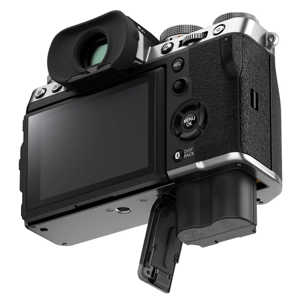 Der elektronische Sucher der X-T5 bietet ein hochauflösendes Sucherbild mit 3,69 Millionen Bildpunkten und 0,8-facher Vergrößerung. Die Darstellung ist optimal korrigiert und frei von Parallaxenfehlern und Verzeichnung, die ansonsten häufig bei Veränderungen der Augenposition in Erscheinung treten. Die Weiterentwicklung des IBIS-Mechanismus, des elektronischen Suchers und anderer Komponenten erlaubt eine kompakte und leichte Bauweise. Trotz ihrer Leistungsfähigkeit wiegt die Kamera gerade einmal 557 Gramm (Gewicht mit Akku und Speicherkarte). Zudem wurde die Handhabung optimiert und die Bedienbarkeit der Einstellräder und Tasten verbessert. Das wetterfeste Gehäuse kann ohne Bedenken auch in feuchten und schmutzigen Umgebungen genutzt werden.
