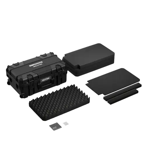 Passgenaue Polsterung. Mit drei Rasterschaumstoffplatten zur Selbstgestaltung, jeweils 43 mm dick: Der vorperforierte Schaumstoff lässt sich durch Heraustrennen einzelner Schaumstoffblöcke (10 x 10 x 43 mm) individuell an einzelne Ausrüstungsgegenstände anpassen und bietet so in Verbindung mit dem 10 mm starken Schaumstoff-Bodenpolster und dem Noppenschaumstoff im Deckel ausgezeichneten Schutz beim Transport. Der Noppenschaumstoff ist festgeklemmt, kann aber auch mittels mitgeliefertem doppelseitig klebendem Klebestreifen im Deckel befestigt werden. Material: Polyurethan.