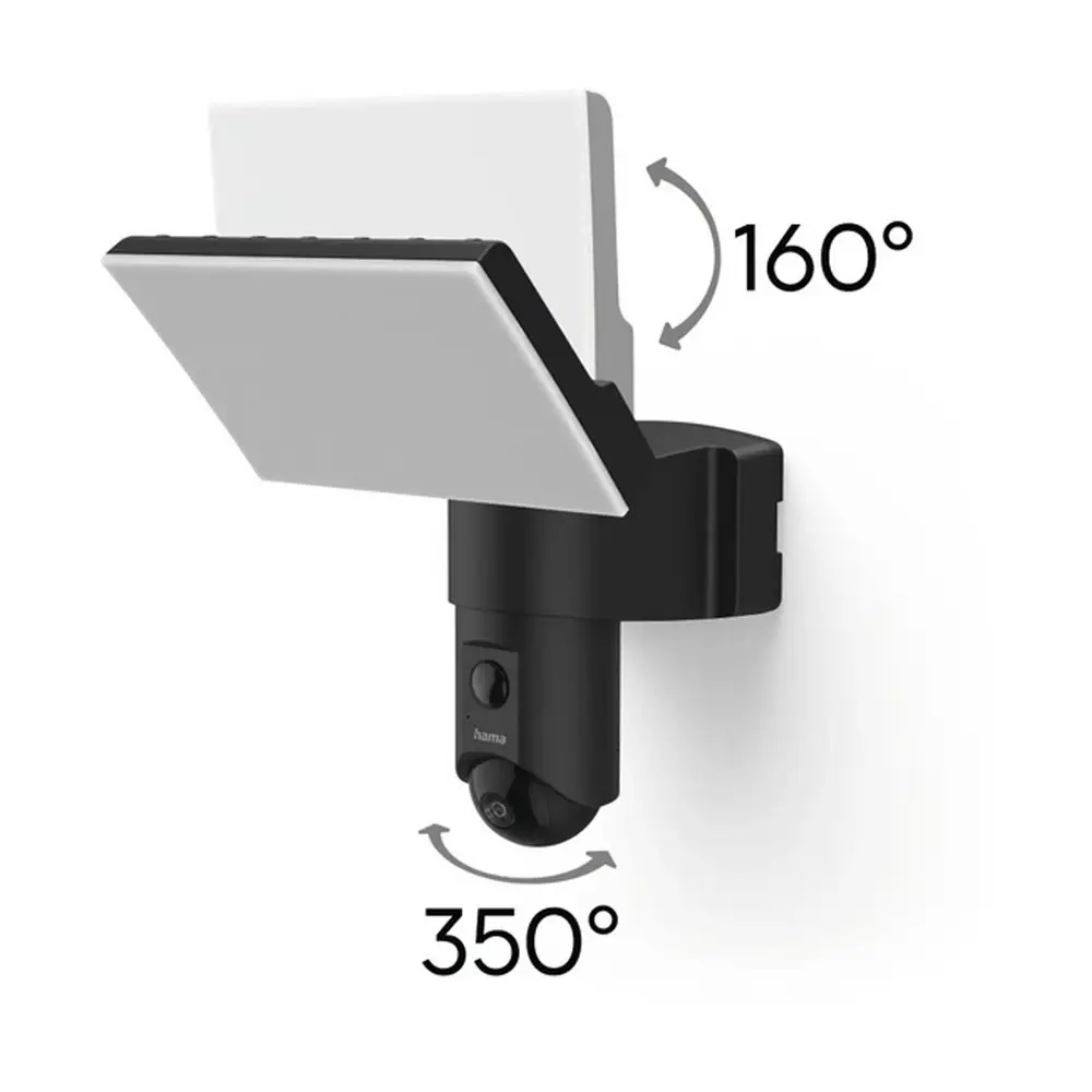 Abklemmen, anklemmen, fertig: Das ist das Prinzip der Outdoor-Kamera mit integriertem Licht. Sie bekommen eine 2-in-1-Lösung und nutzen die vorhandenen Verkabelungen der vorherigen Außenlampe, ganz ohne großen Installationsaufwand. Mit einer Farbtemperatur von 4000K und starken 1800 Lumen wird der Außenbereich in helles Licht getaucht. Das Flutlicht lässt sich ebenfalls bequem über die Hama Smart Home-App steuern, z.B. ein- oder ausschalten, Lichtintensität verändern. Das Highlight sind natürlich die smarten Funktionen: Über die App lassen sich verschiedenste Szenen und Automationen einstellen, z.B. die Lichtsteuerung mit dem Bewegungssensor verknüpfen oder auch andere Smart-Home-Geräte einbinden, z.B.: wenn das smarte Rollo runtergelassen wird, soll sich die Hofbeleuchtung einschalten oder wenn Sie die WLAN-LED-Lampe im Wohnzimmer einschalten, soll die Leuchte der Überwachungskamera in dezenter Intensität strahlen.