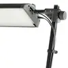 Leuchtengehäuse aus stabilem, eloxiertem Aluminium-Profil, schwenk-, verschieb- und höhenverstellbar. Abnehmbare Softscheiben. Vertikale Haltestangen mit Höhenmarkierungen, schwenkbar in Rastgelenken. Befestigung mit stabilen Druckguss-Klemmsockeln. Spannweite bis 48 mm. Inklusive Netzteil.