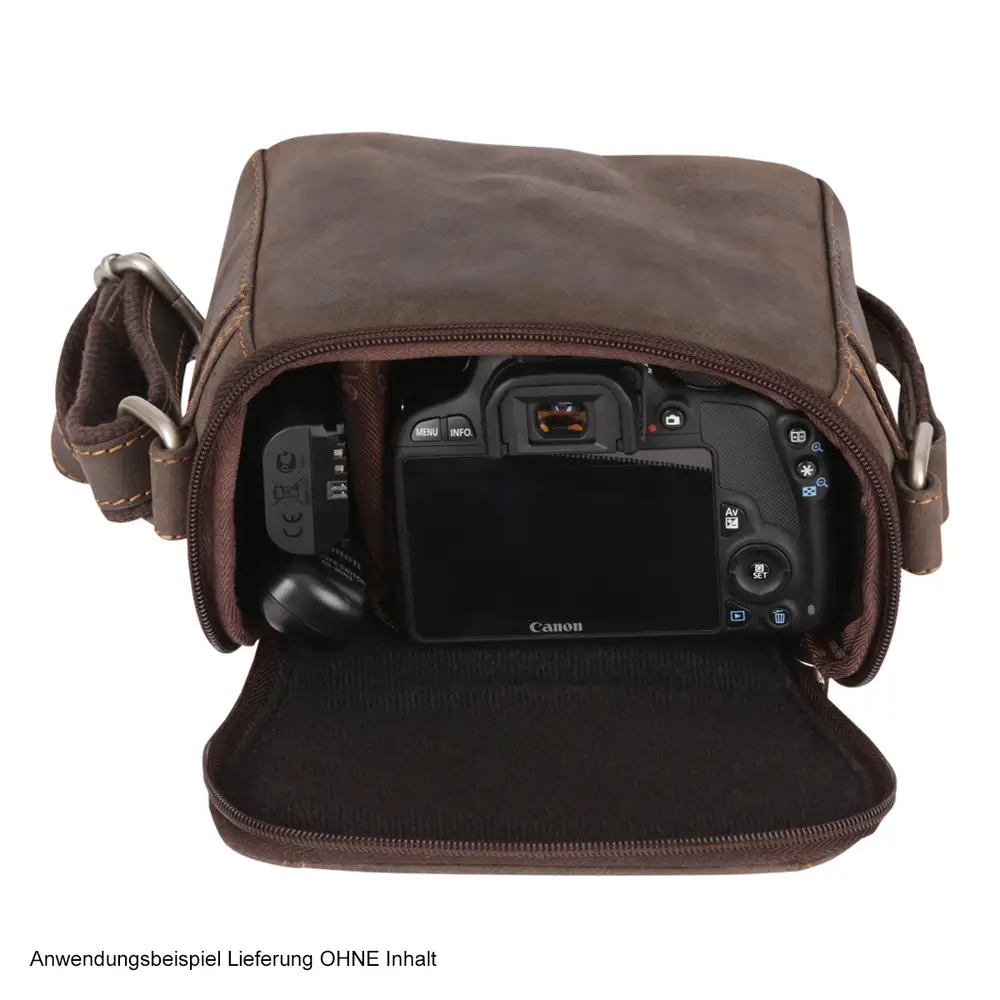 Die ausgewogenen Innenmaße für ein Maximum an Platzangebot mit variablen Trennwänden in Verbindung mit einer minimal nötigen Gesamtgröße passen sich den kompakten Kamerasystemen perfekt an.Selbst zusätzliche Objektive und weiteres Zubehör finden hier Platz. Der große Deckel mit Reißverschluss öffnet vom Körper weg und bietet so einen unkomplizierten und schnellen Zugriff zur Kamera.Schmale Zubehörfächer an der Front, der Seite und auf dem Deckel nehmen Speicherkarten und Visitenkarten auf.