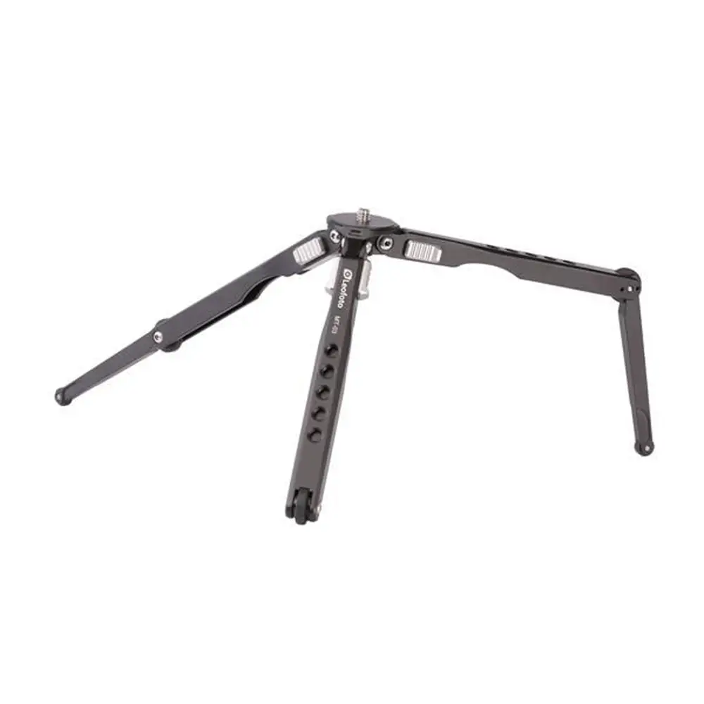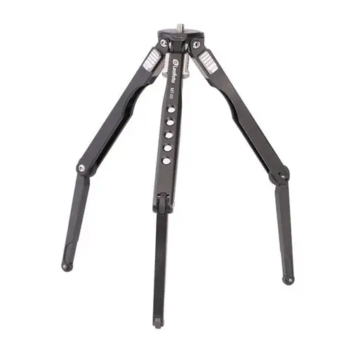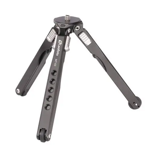 Noch kompakter bei gleicher Stabilität geht kaum: Dieses Set aus dem Tischstativ MT-03 und dem Kugelkopf MBH-19 wiegt zusammen nur 251 g! Sein Komplett-Packmaß – Stativ mit angeschraubtem Kugelkopf – beträgt kurze 192 mm. Da stellt sich erst gar nicht die Frage, wohin damit unterwegs. Platz dafür ist selbst in kleineren Fototaschen. Freiheit, Flexibilität und Kreativität setzt dieses „Spinnenbein“-Mini-Stativ kaum Grenzen. Die erste technische Voraussetzung hierfür ist zunächst einmal die bei Leofoto generell übliche Fertigungsmethode. Wie für alle Leofoto-Produkte aus Aluminium, kommt auch hier ausschließlich hochbelastbares Flugzeugaluminium zum Einsatz. 2 kg Tragkraft (bei direkt auf die 1/4"-Schraube aufgesetzter Kamera) sind das Resultat aus hochwertigem Material und präziser Herstellungsweise. 162 g Gewicht verteilen sich auf 143 mm geschlossener Länge. Ohne Kugelkopf beträgt die Arbeitshöhe maximal 180 mm und minimal 30 mm.