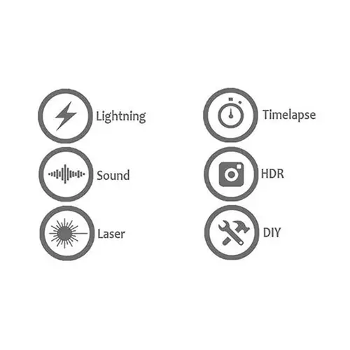 Licht, Ton und Laser: Der Miops SmartPLUS verfügt über drei eingebaute Sensoren. Diese werden beispielsweise zur Erkennung von Blitzen, Feuerwerkskörpern, platzenden Luftballons, spritzendem Wasser und Explosionen eingesetzt. Sobald der Sensor dies erkennt, löst der Smart+ Ihre Kamera oder den Blitz aus. Der Sensor ist so empfindlich, dass er innerhalb von Millisekunden auf einen Impuls (Licht, Schall und Laser) reagieren kann. Unverzichtbar für die High-Speed oder Hochgeschwindigkeitsfotografie. Die Laserfunktion arbeitet mit einem grünen und roten 5mW-Laserstrahl.