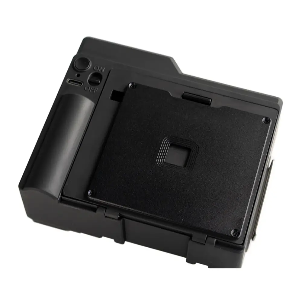 Hinweis: Der Dunkelschieber kann den Lichteinfall nur vorübergehend reduzieren. Wenn Sie das Sofortbild-Rückteil mit unbelichtetem Film aus dem Kameragehäuse entfernen möchten, legen Sie zuerst den Dunkelschieber ein, nehmen Sie das Sofortbild-Rückteil ab und legen Sie es sofort in einen lichtdichten Stoffbeutel oder eine Schachtel.