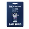 ¹ Die Geschwindigkeit kann bei Geräten, die UHS-I nicht unterstützen, aufgrund abweichender Interfacevoraussetzungen variieren. ² GB = 1.000.000.000 Bytes. Ein gewisser Anteil der Kapazität kann für Systemdateien und die Instandhaltung genutzt werden, sodass die tatsächliche Kapazität von den Angaben auf dem Produktetikett abweichen kann. Die tatsächlich verfügbare Kapazität der drei Modelle liegt bei 128.010.158.080, 256.020.316.160 bzw. 512.007.077.888 Byte. ³ Die genannten Lese- und Schreibgeschwindigkeiten basieren auf internen Tests, die unter kontrollierten Bedingungen durchgeführt wurden. Die tatsächlichen Geschwindigkeiten können je nach Kartenkapazität variieren. Die angegebene Leistung wurde durch die Verwendung von PRO Ultimate SD-Karten mit Samsung-Lesegeräten erreicht. ⁴ Die 512, 256, 128 und 64 GB Speicherkarten unterstützen die Aufzeichnung von 4K UHD Videos (3.840 x 2.160 px). Die Kompatibilität kann abhängig vom Host-Gerät variieren. ⁵ Der UHS Class 3-Standard bezeichnet eine Leistungsoption, die für 4K-UHD-Videoaufnahmen mit UHS-kompatiblen Host-Geräten konzipiert wurde. Laut Video Speed Class 30 (V30) muss eine durchgängige Videoaufzeichnungsrate von 30 MB/s erreicht werden können. Die Leistungsoption ermöglicht Echtzeit-Videoaufnahmen mit UHS-fähigen Host-Geräten. Vgl. www.sdcard.org/consumers/speed ⁶ Wasserfest: bis zu 72 Stunden in 2 Meter tiefem Meerwasser. ⁷ Temperaturbeständig: Betriebstemperaturen von –25°C bis 85°C, nicht in Betrieb: