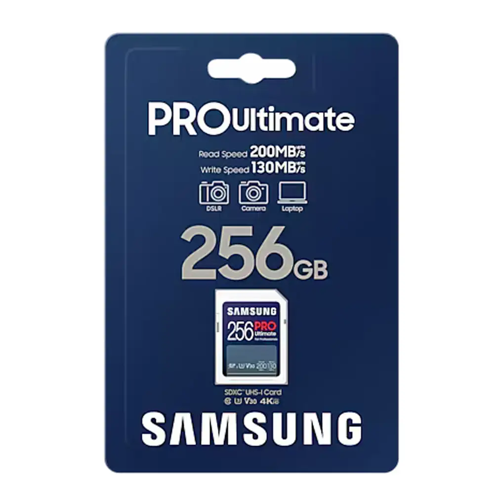 halten. Mit ihrer beeindruckenden Geschwindigkeit, Stabilität und Zuverlässigkeit ist die UHS-I klassifizierte¹ PRO Ultimate-Serie eine naheliegende Wahl für professionelle Anwender. Wer sich von vielen Dingen inspirieren lässt, braucht auch viel Speicherplatz. Die PRO Ultimate-Serie stellt daher Kapazitäten von 64 bis 512 GB² zur Verfügung. Da finden auch große und anspruchsvolle Projekte ausreichend Platz. Richtig viel Tempo in die Shootings bringen die hohen sequenziellen Lese- und Schreibgeschwindigkeiten von bis zu 200 MB/s³ bzw. 130 MB/s³. Bildserien und hochauflösende 4K-Videos⁴ profitieren zudem von der kombinierten U3- und V30-Leistung⁵.