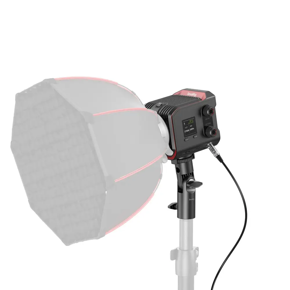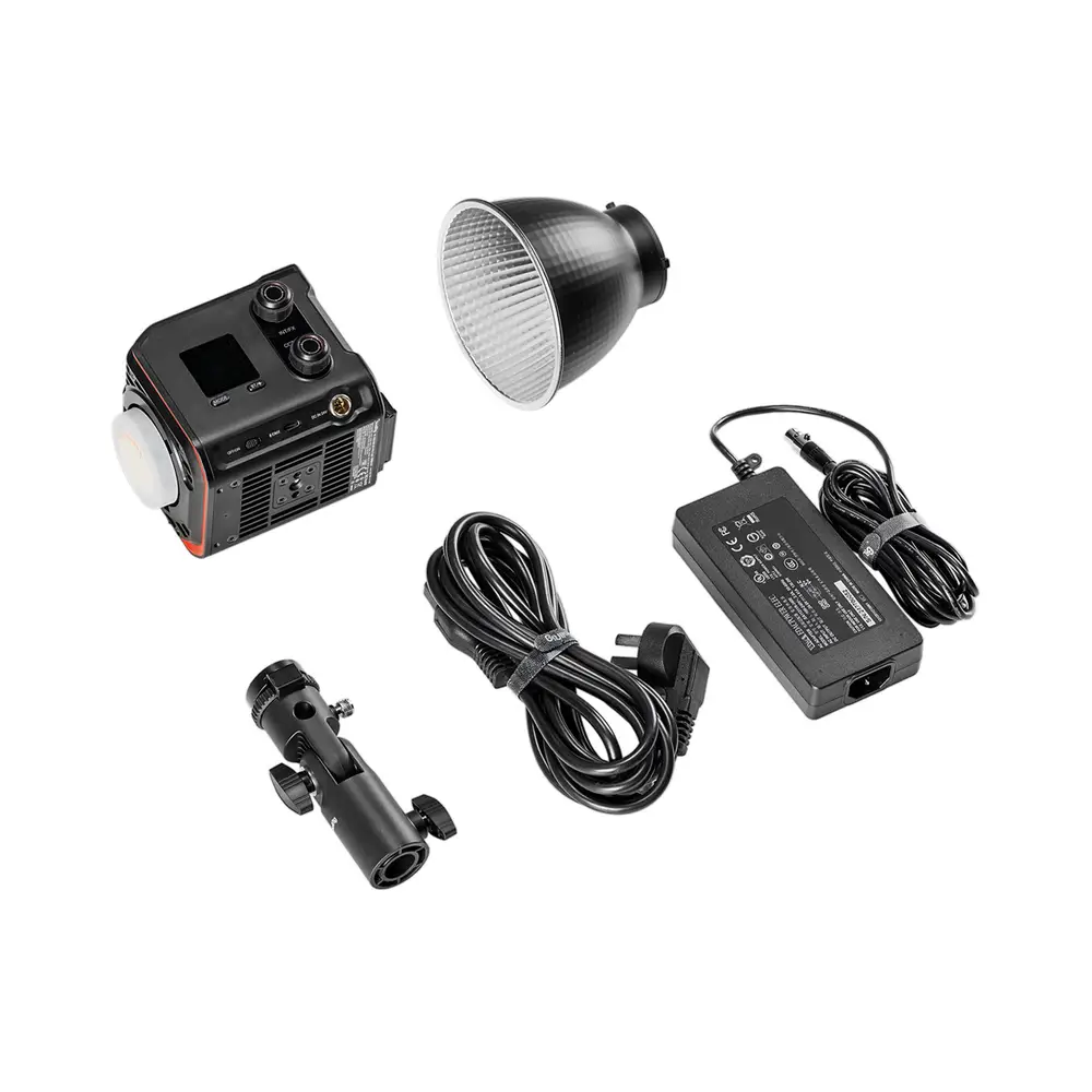 Im Lieferumfang ist ein umfangreiches Zubehör enthalten, das mit den Mini-Mount-Lichtformern von SmallRig (D30, D60, 45x45 Softbox), dem Batteriezubehör (V-Mount- und NP-F970-Batterien, Universalgriff für COB-Leuchten) und dem Montagezubehör (Lichtstativadapter, Bowens-Mount-Adapter, Magic Arm mit 1/4"-20 ARRI-Aufnahmezapfen) vollständig kompatibel ist. Dies bietet dem Benutzer eine Komplettlösung für Mobilität, bequeme Stromversorgung, einfache Steuerung, hochwertige Lichtquelle und ein komplettes Zubehörsystem.