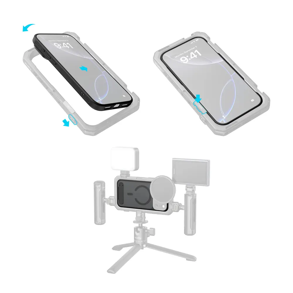 Diese Handyhülle passt problemlos in SmallRig-Handyhalterungen, ohne dass sie entfernt werden muss, und bietet vielseitige Erweiterungsmöglichkeiten für professionelle Aufnahmen.