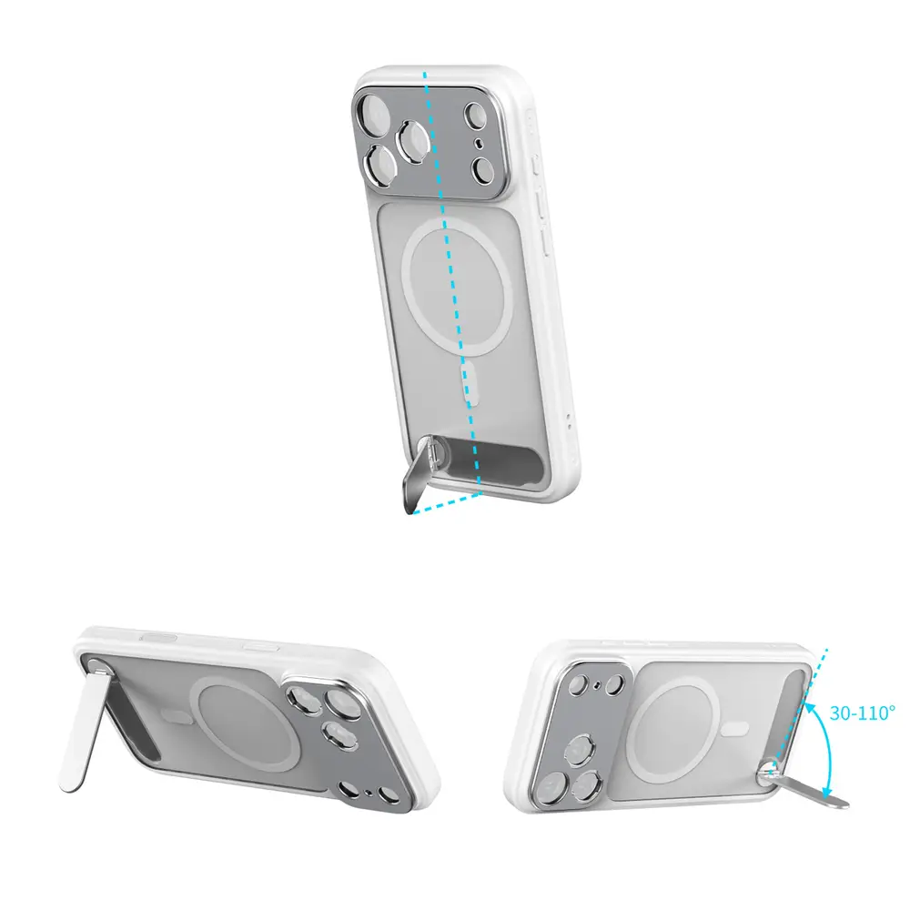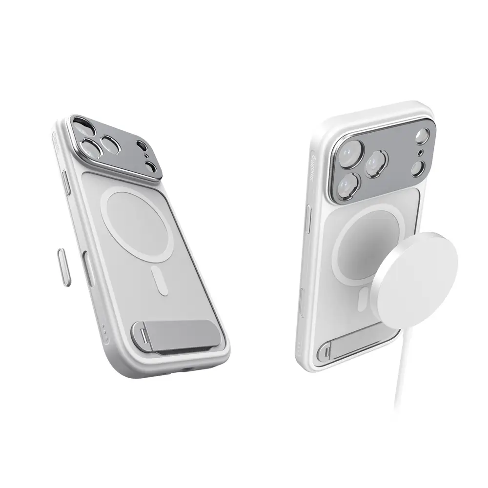 Eingebaute MagSafe-Magnete gewährleisten universelle Kompatibilität mit MagSafe-Zubehör, während eine seitliche Öse die Befestigung von Handgelenk- oder Schultergurten für bequemen Transport unterwegs erleichtert.