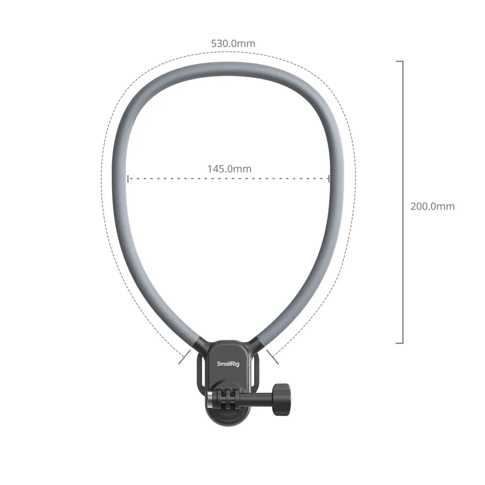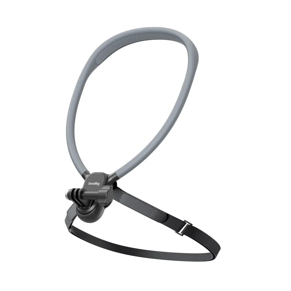 Die SmallRig Nackenstützen sind speziell für komfortable und stabile POV-Aufnahmen entwickelt. Es verfügt über ein stromlinienförmiges 600-mm-Nackenband für bequemen Sitz und ein One-Touch-Schnellbefestigungssystem mit Entriegelungstaste für müheloses Tragen. Dieses Modell verfügt über eine universelle 2-Stift-Halterung für eine breite Kompatibilität mit Action-Kameras und einen Brustgurt, der Verwacklungen minimiert und für stabile Aufnahmen bei dynamischen Aktivitäten sorgt. Bei dem Design stehen sowohl universelle Kompatibilität als auch Benutzerkomfort für längere Filmsessions im Vordergrund.