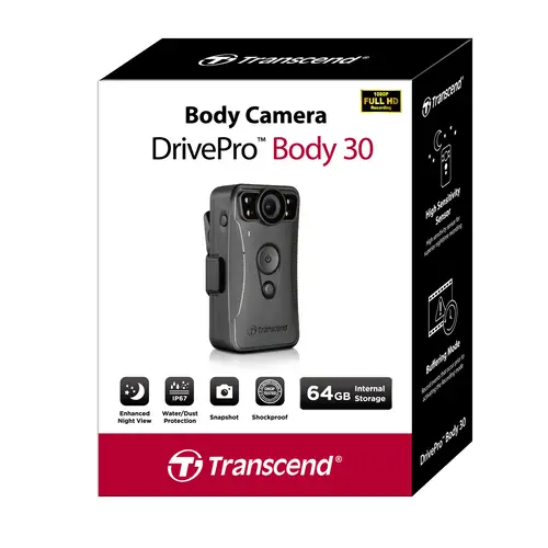 Die DrivePro Body 30 hat einen eingebauten Li-Polymer Akku, der bis zu 12 Stunden Videoaufzeichnung mit einer einzigen Ladung schafft. Dies ermöglicht z. B. der Polizei und anderen Profis die Aufzeichnung über eine ganze Schicht.